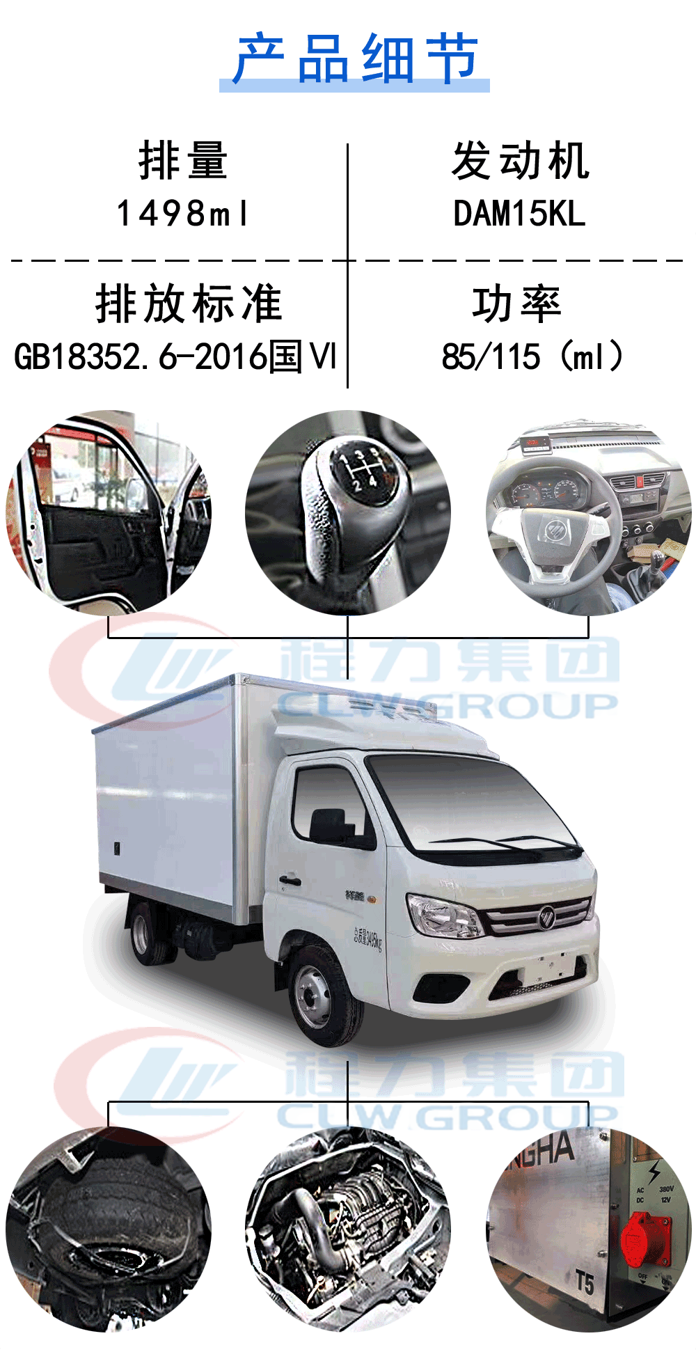 | 其他 | 貨廂頂部封閉不可開啟.ABS系統(tǒng)控制器型號為YF9,ABS系統(tǒng)控制器生產(chǎn)企業(yè)是武漢元豐汽車電控系統(tǒng)有限公司.可選裝無側(cè)開門風格貨廂,可選裝導流罩,可選裝反光膜型反光標識.選裝帶前霧燈不帶晝間行駛燈造型,選裝帶前霧燈及晝間行駛燈造型,可選裝黑色裝飾條,可選裝不帶黑色裝飾條.發(fā)動機DAM15KL,DAM16KL對應(yīng)的油耗值分別為8.3L/100km,8.7L/100km,分別對應(yīng)最高車速100km/h,110km/h.選裝同等功率不同造型的制冷機外觀照片.選裝高位進氣管.選裝后視鏡風格. | ||
